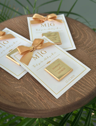 Personalized Chocolate Thank You Card with Bow, Elegant Wedding Favor, Anniversary, Celebration