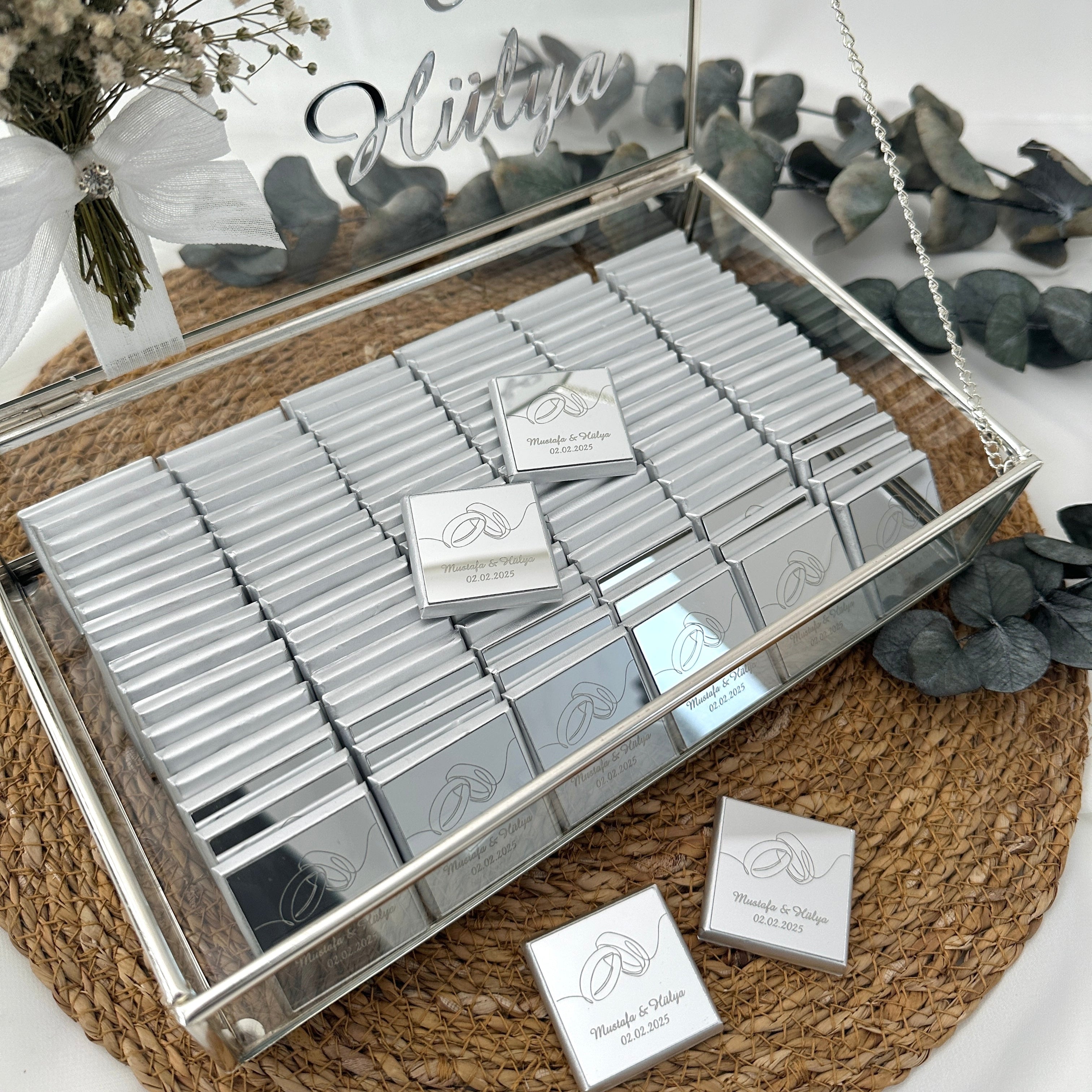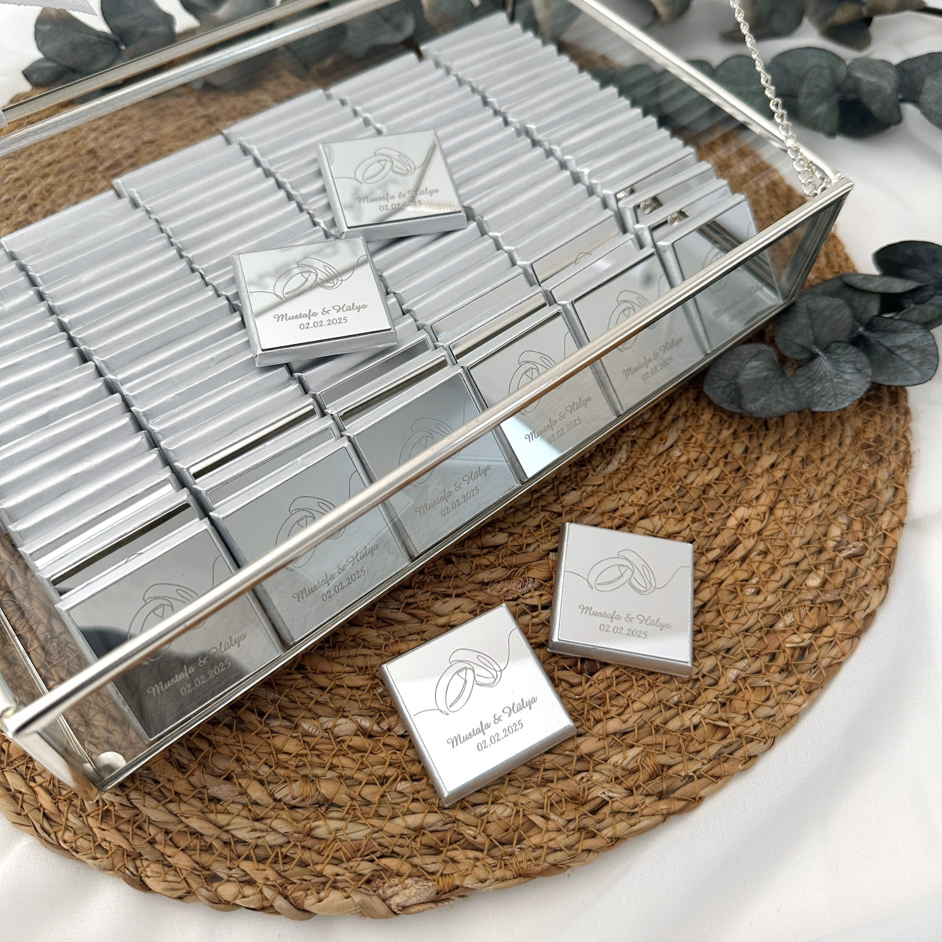 Silver Elegant Glass Box with Personalized Chocolates – Luxury Favor