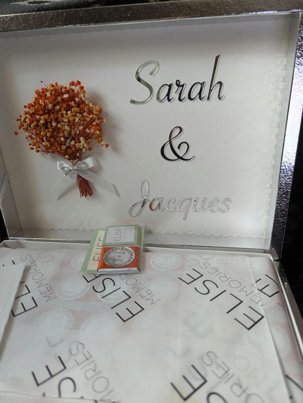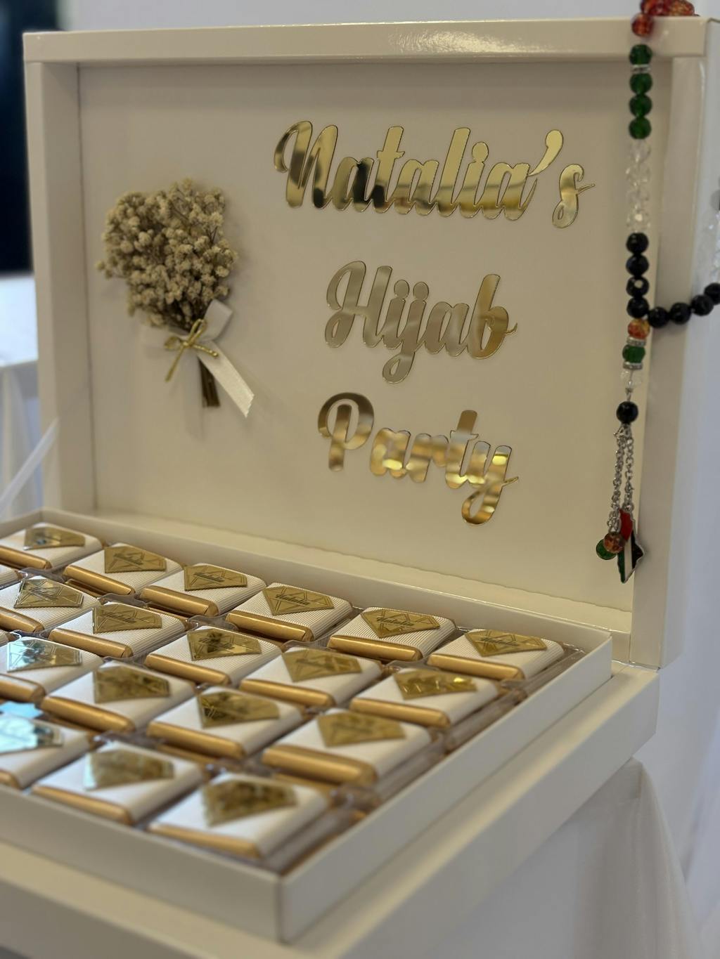 I received my box with chocolate. So elegant! So beautiful! I received it in a very timely manner. Definitely recommend for any event!
